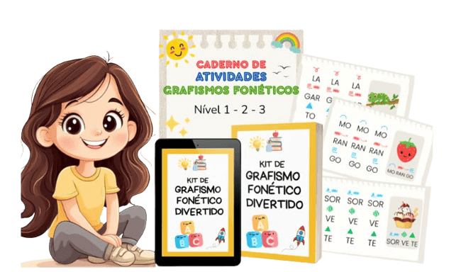 Com o Kit de Grafismo Fonético, baseado no método americano de alfabetização, seu filho aprende a ler até 5x mais rápido – de forma divertida, simples e eficaz, direto de casa!